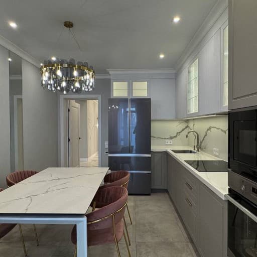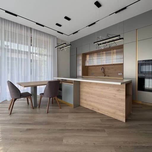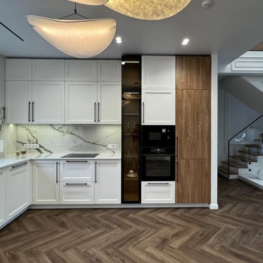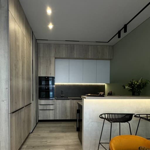 Используем все мебельные материалы: ЛДСП, МДФ в пленке, пластике, эмали, шпоне. Материалы для столешниц: акриловый камень, HPL, кварцевый агломерат и другие современные, качественные материалы.